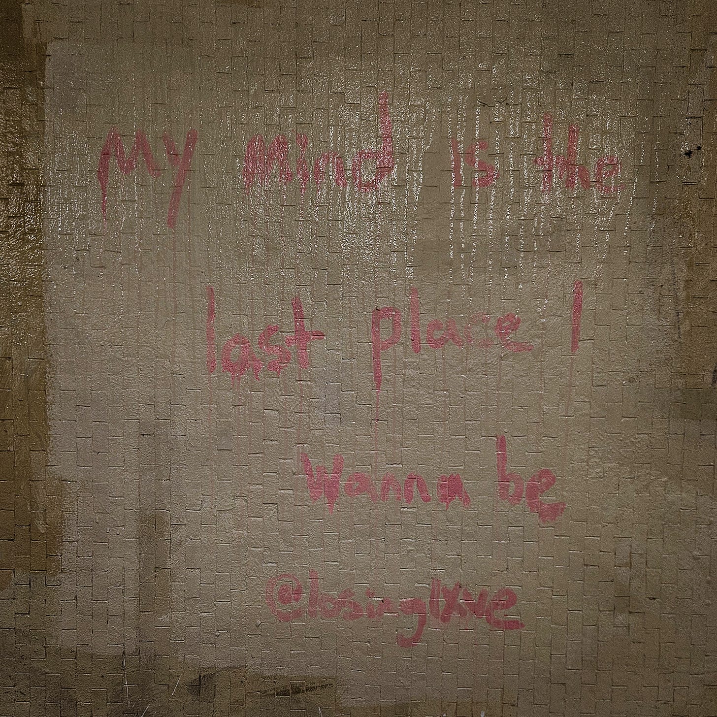 And as I was having these thoughts, I noticed something written on the wall. It was bright pink, barely readable.