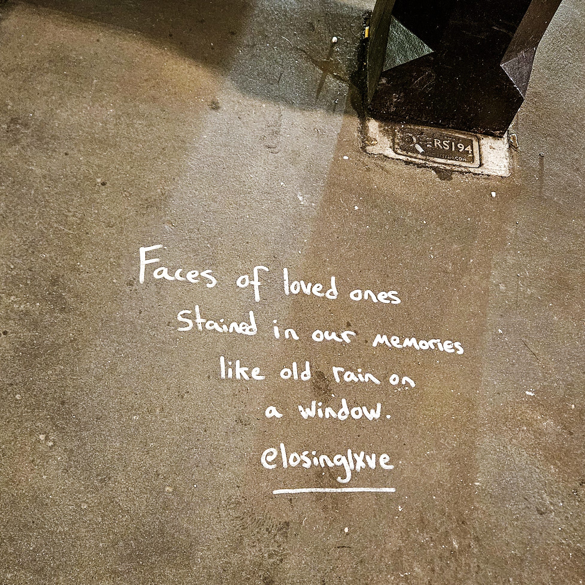 “Faces of loved ones stained in our memories like old rain on a window.” With an Instagram handle: @losinglxve